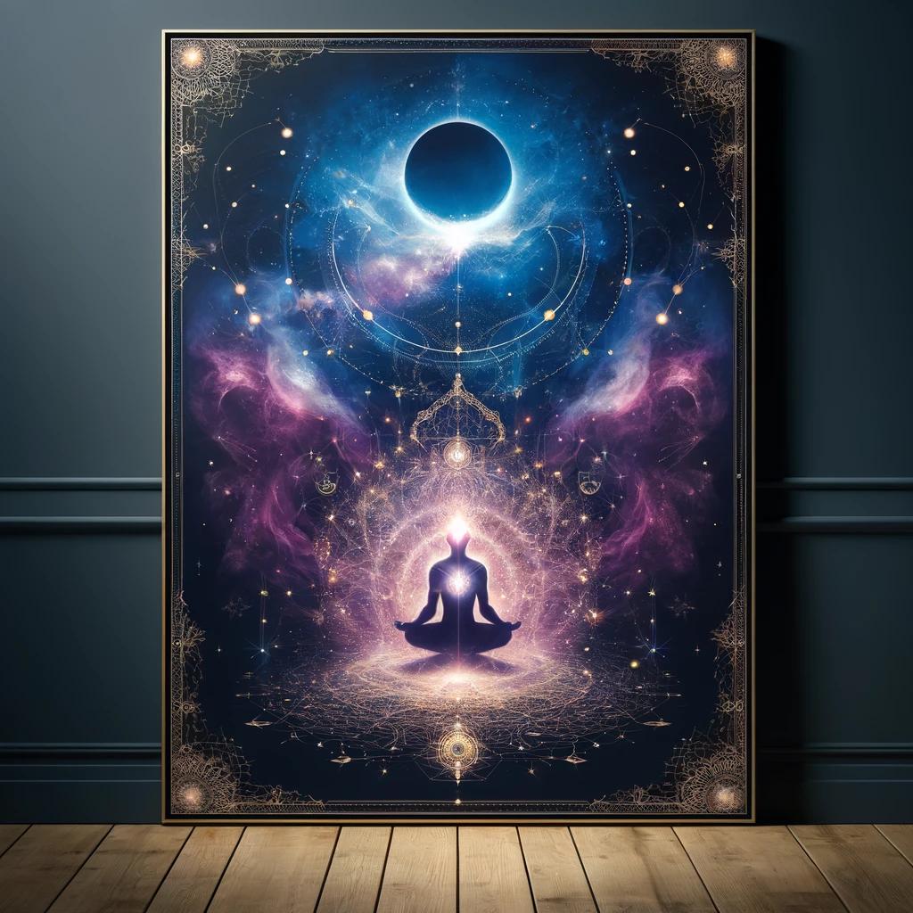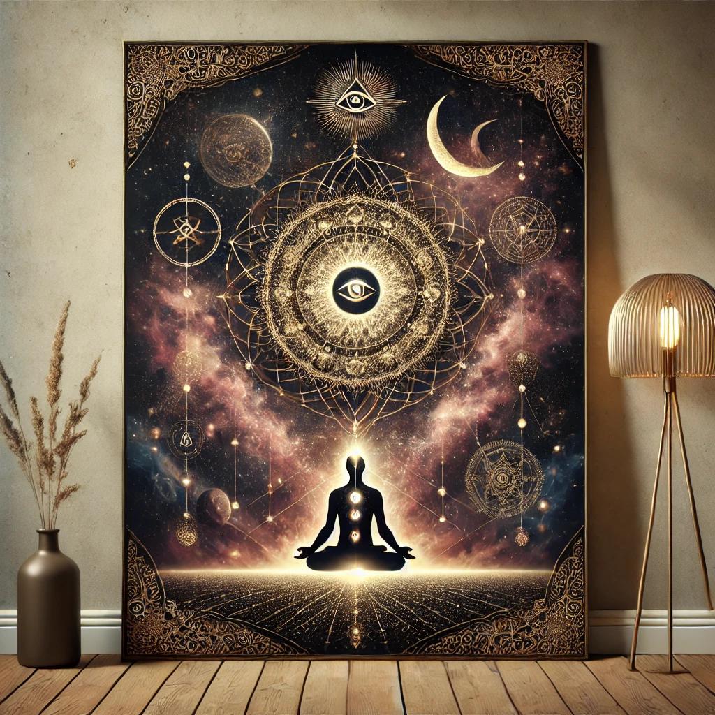 Designed for those who love celestial artwork, this boho wall print features enchanting symbols, ethereal patterns, and deep spiritual elements. The balance of light and shadow in this mystical design creates a visually stunning and meaningful piece.