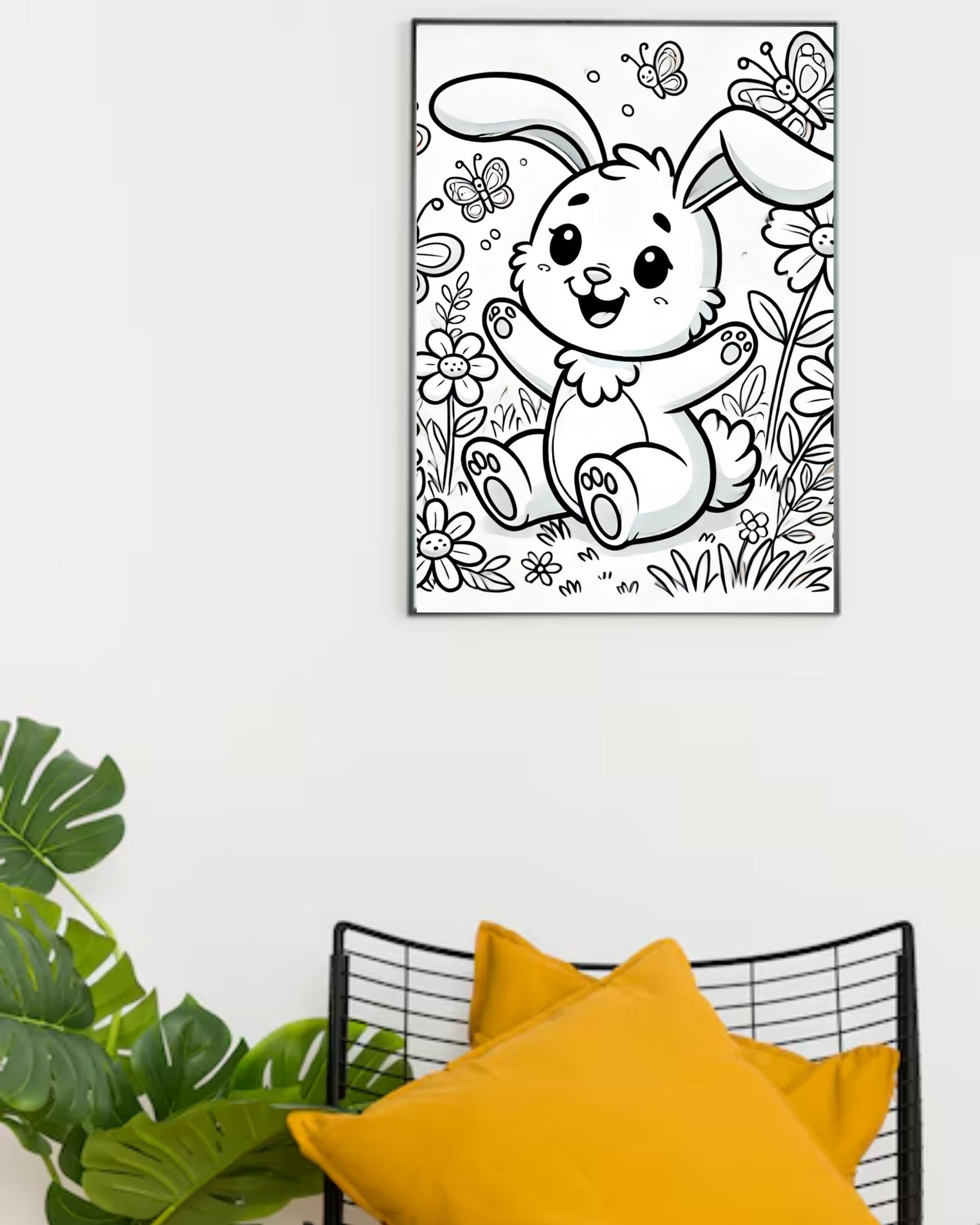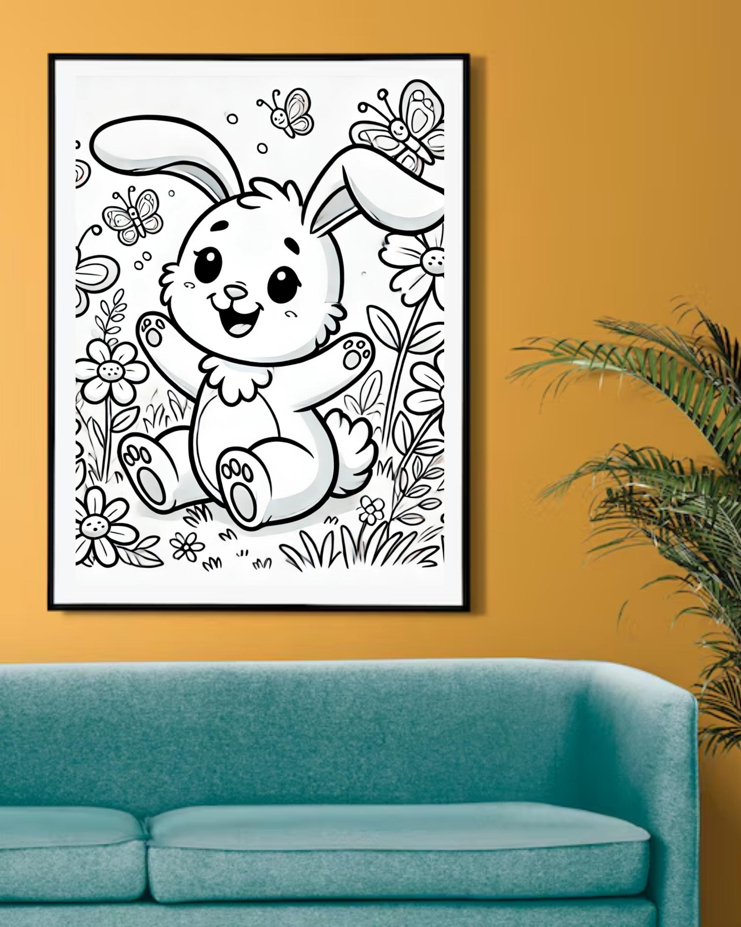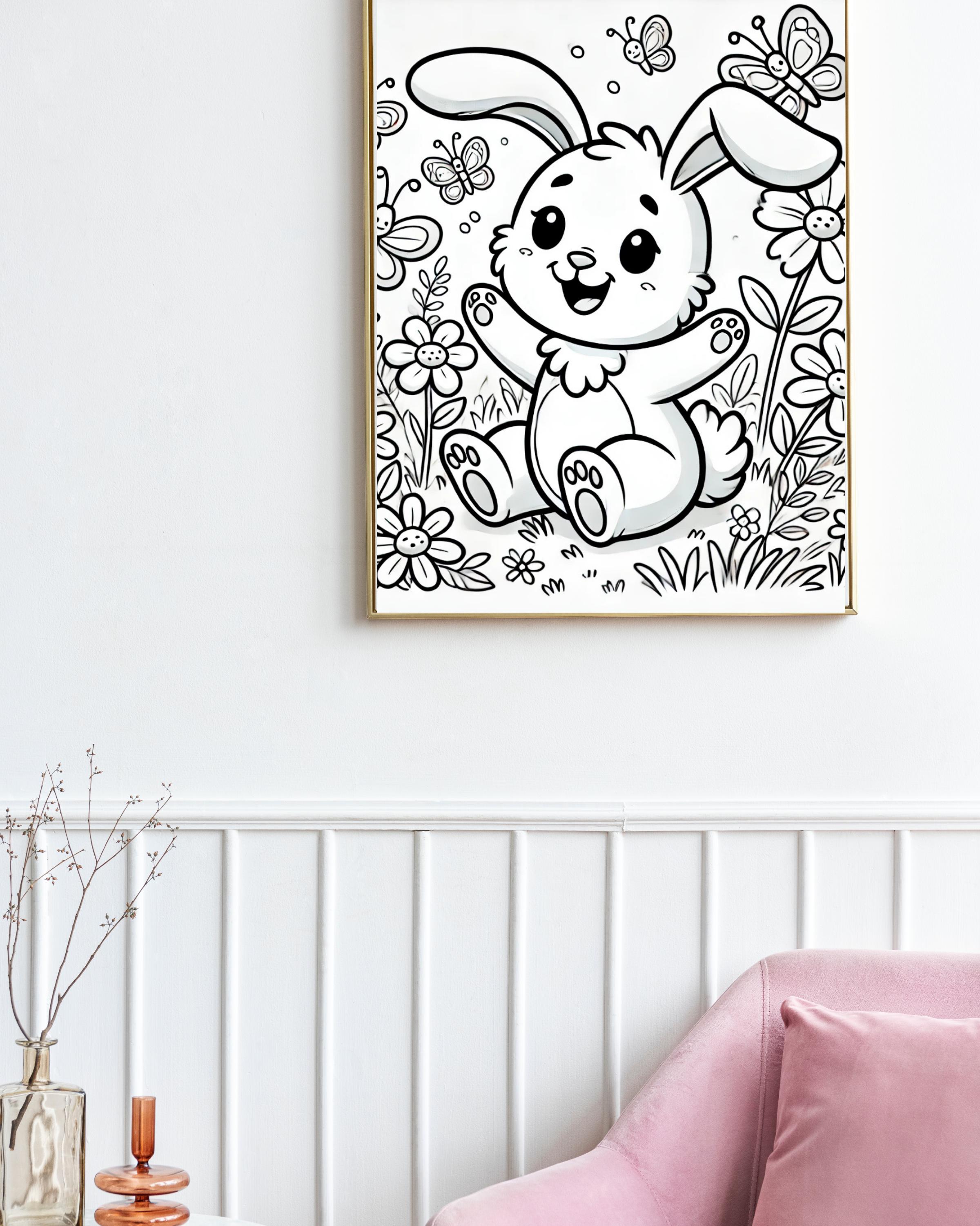 Are you looking for a delightful bunny coloring page that brings joy and creativity? This happy bunny print features a cheerful cartoon rabbit surrounded by flowers and butterflies, making it the perfect fun kids activity. Whether for toddlers, young artists, or anyone who enjoys printable coloring, this artwork is sure to provide hours of entertainment.