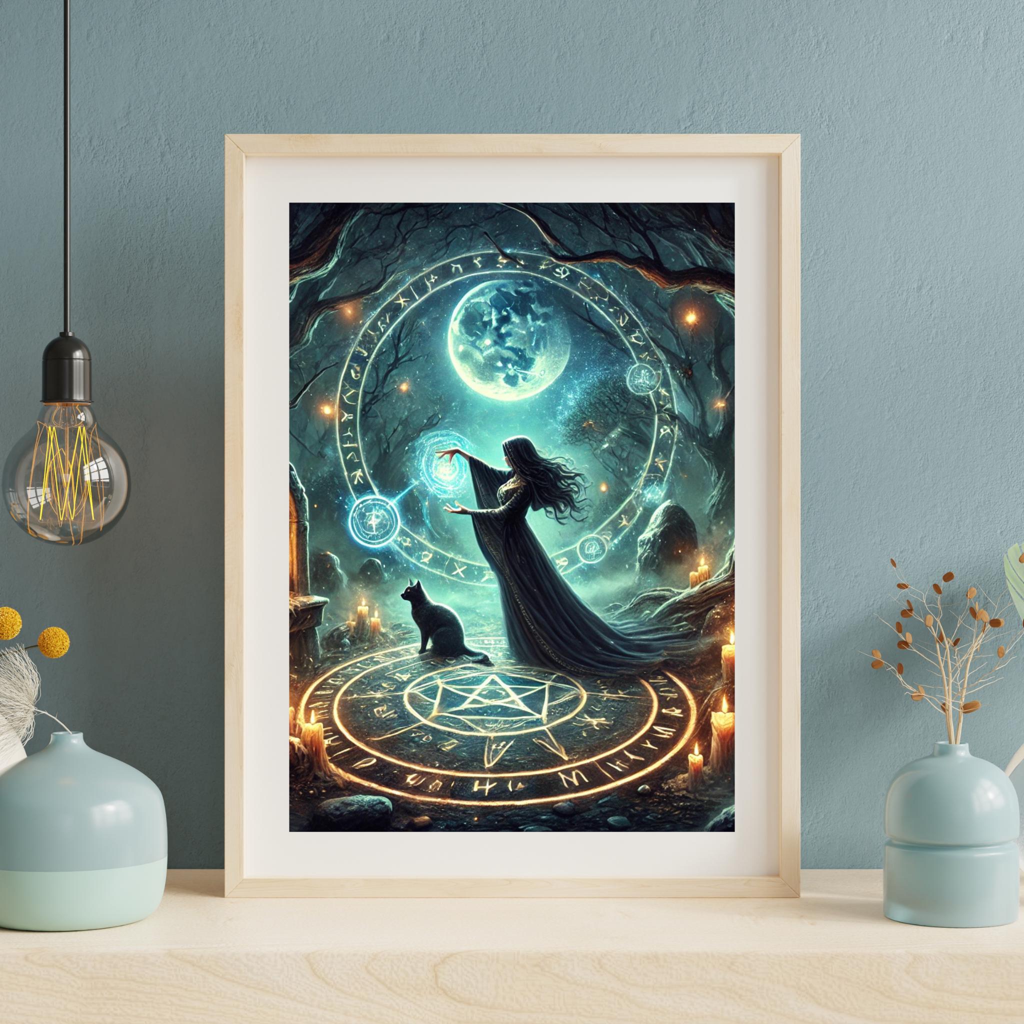 This occult wall print is available as a high-resolution digital download, ensuring crisp details and vibrant contrast. Whether printed at home or through a professional service, it brings powerful wiccan digital energy to your decor.