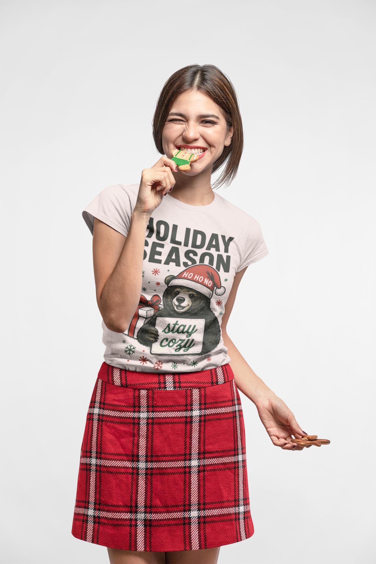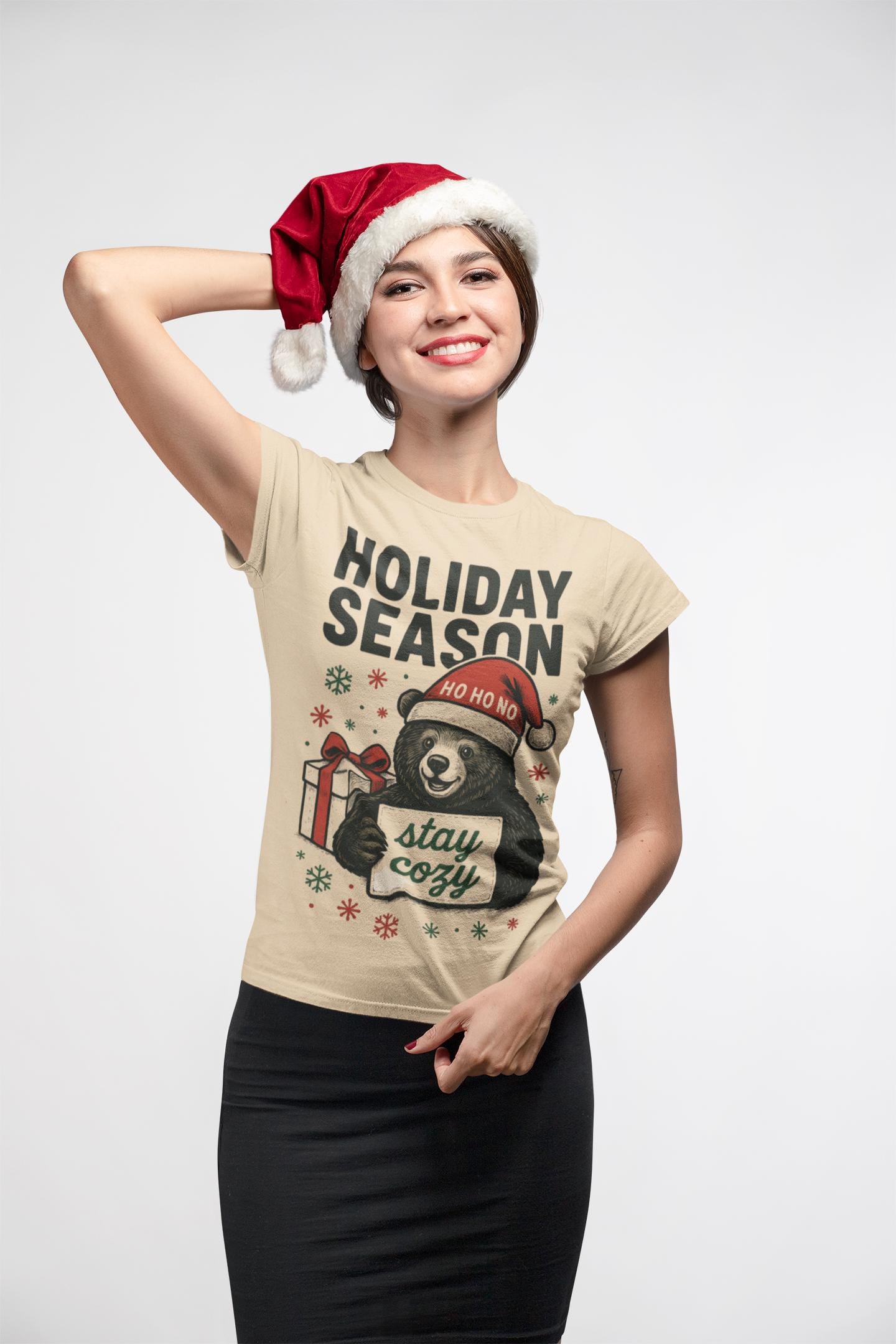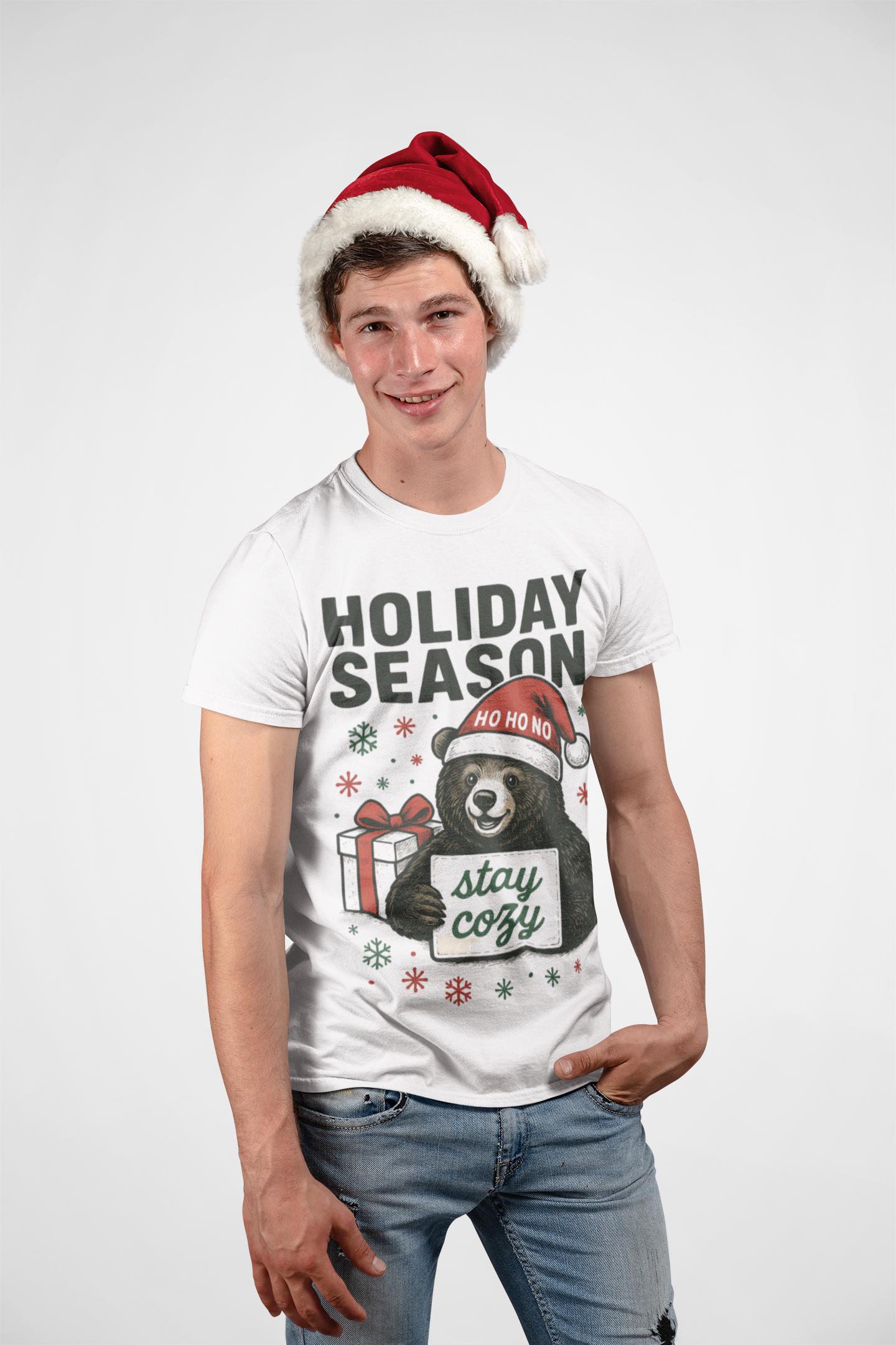 Get ready for the festive season with this cozy Unisex Jersey Short Sleeve Tee. Featuring a delightful bear in a Santa hat, this shirt embodies a fun and cheerful vibe, perfect for celebrating the holidays. It's not just a tee; it's a statement piece for family gatherings, parties, or cozy nights in. Ideal for anyone looking to spread joy during Christmas, New Year's, or any holiday celebration. Wear it with jeans or layer it for a chic, laid-back look. This tee is perfect for individuals who prioritize comfort and style while enjoying their holiday festivities.