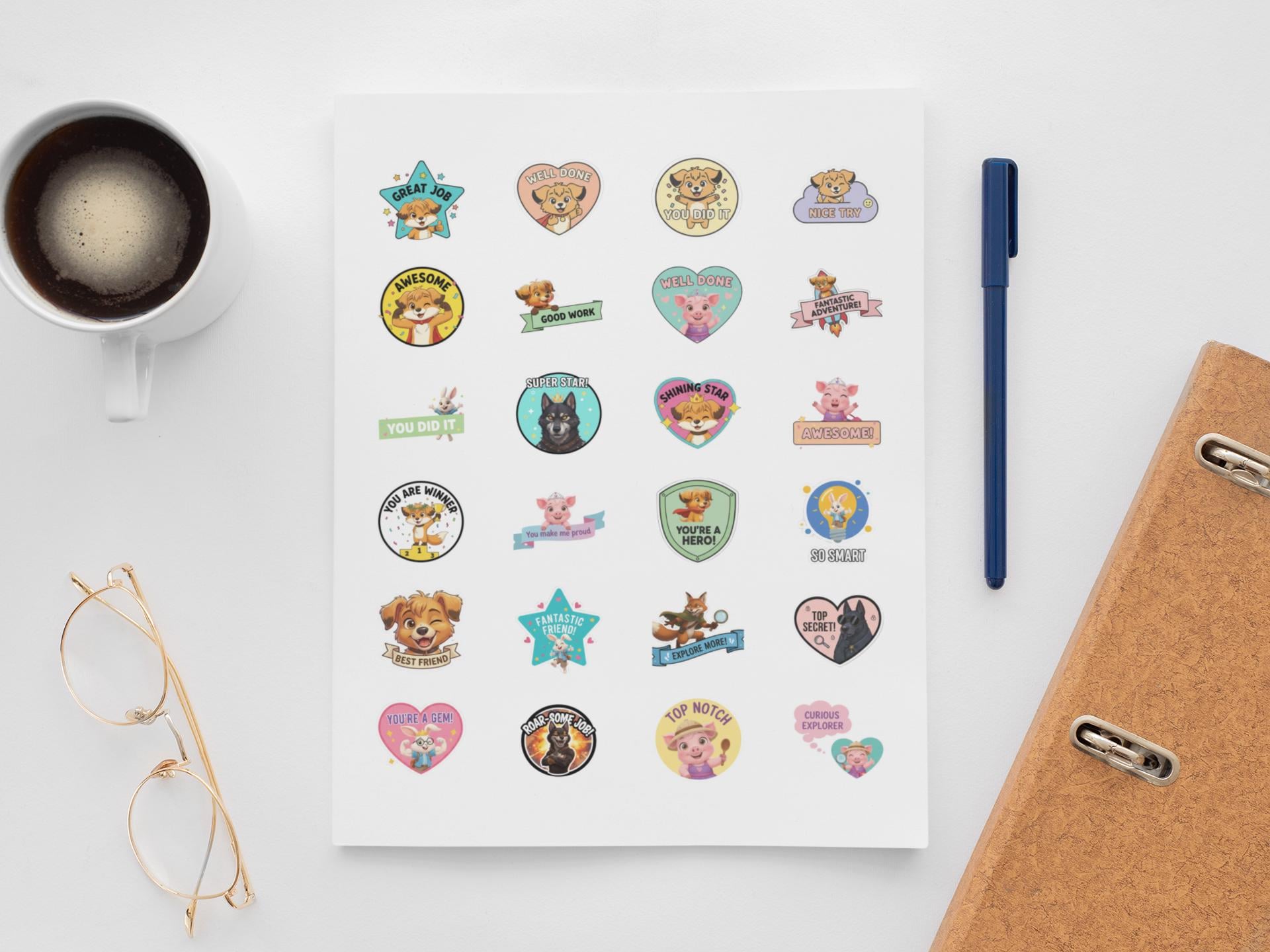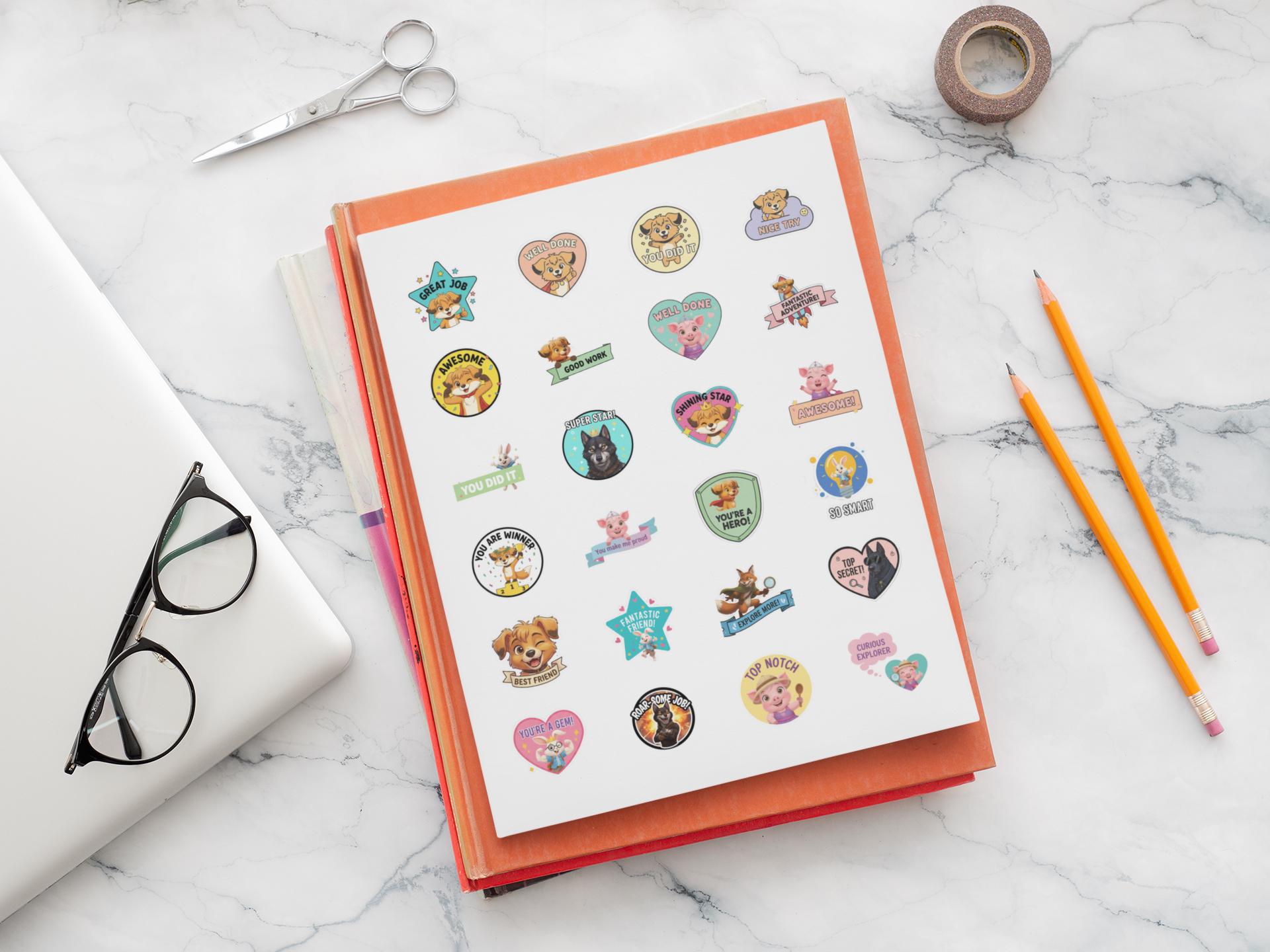 This Rewards Sticker Sheet is filled with friendly characters, warm colors, and uplifting messages
