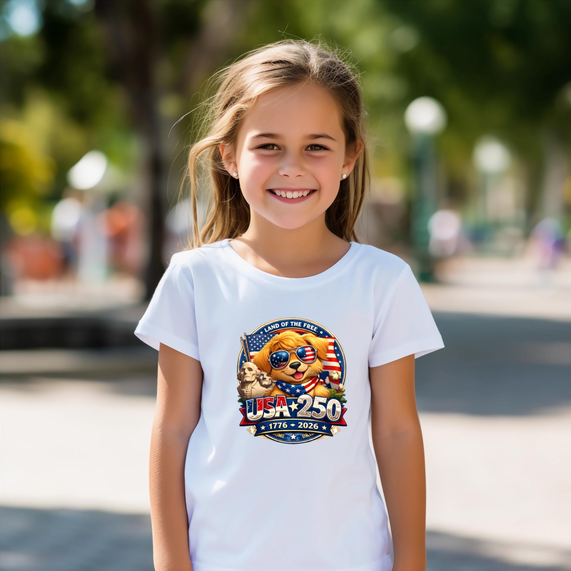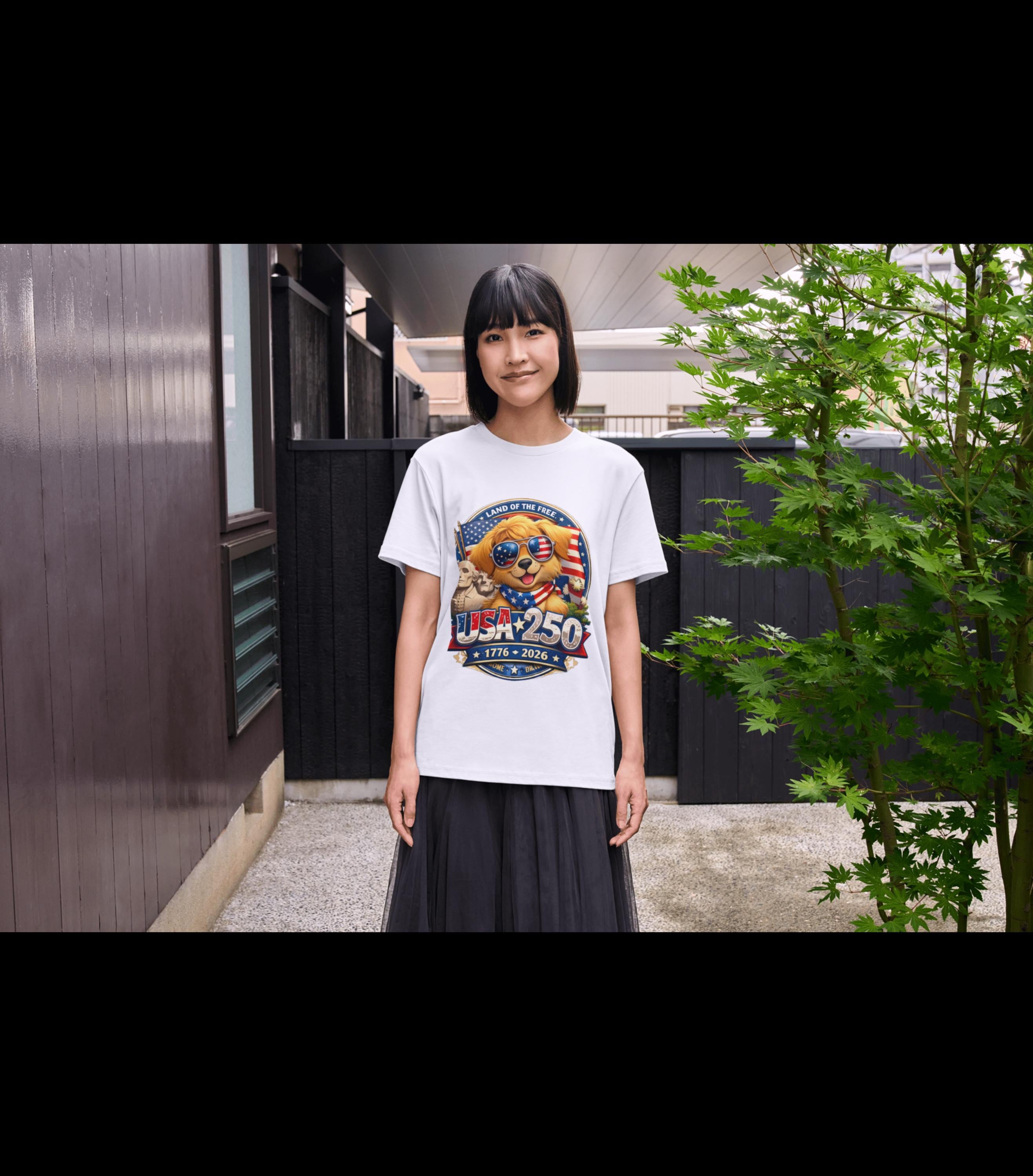 Get ready for the historic 2026 celebration with our exclusive USA 250 Anniversary T-Shirt. Featuring Linmo, our patriotic Golden Retriever, this design perfectly captures the spirit of liberty from 1776 to 2026. Whether you are attending a 4th of July parade or looking for a unique collector's item, this tee is the perfect way to show your American pride.