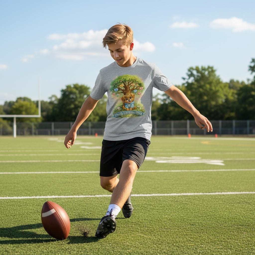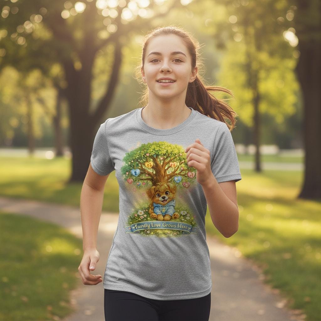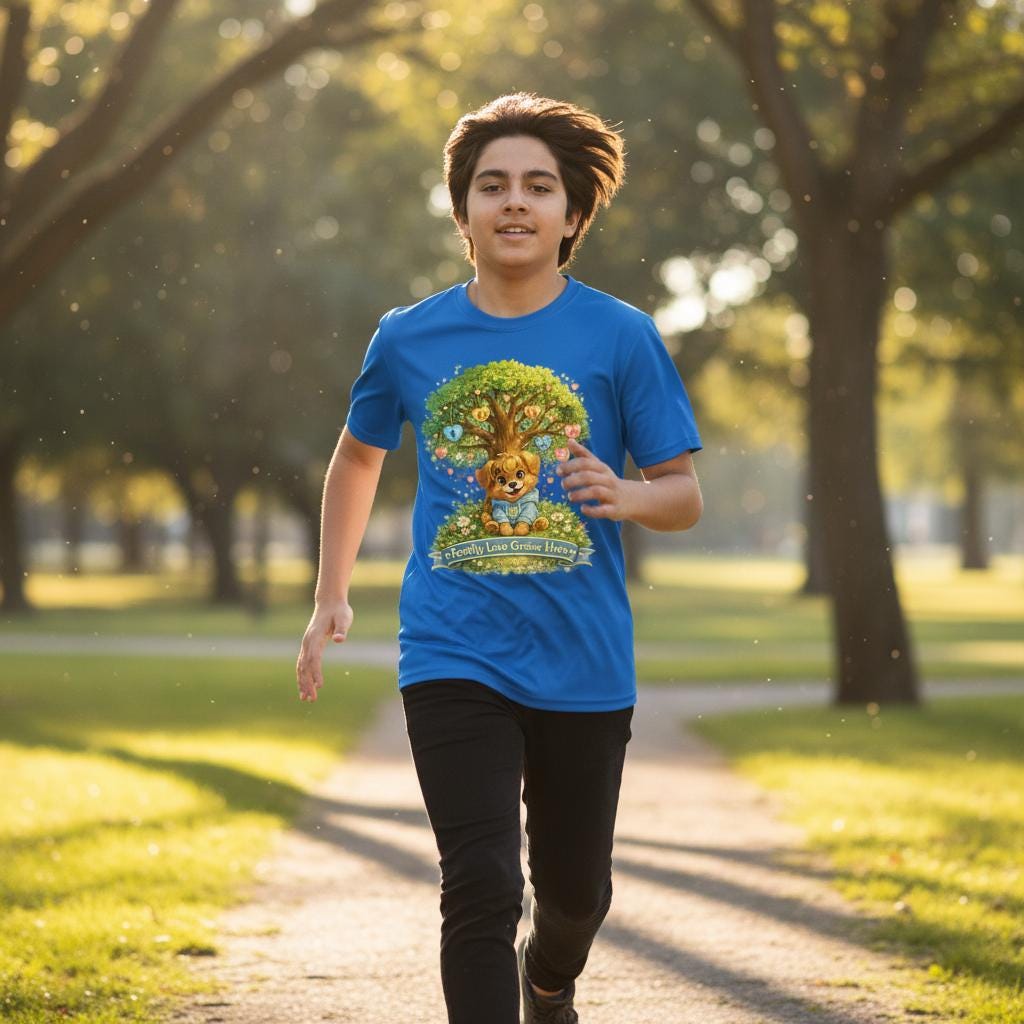 Lightweight and built for movement, this youth athletic tee brings a warm, whimsical touch to playtime. The center artwork—an inviting tree with a smiling fox cub nestled at its roots—radiates gentle optimism and outdoor curiosity. Breathable, moisture-wicking polyester keeps young competitors cool through practices and playground adventures. The soft, extra-light fabric and athletic cut let them run, climb, and explore without restriction. Finished with a clean DTF print that holds vibrant color and a tear-away label for comfort, this tee feels like the next favorite layer for active days spent under open skies.