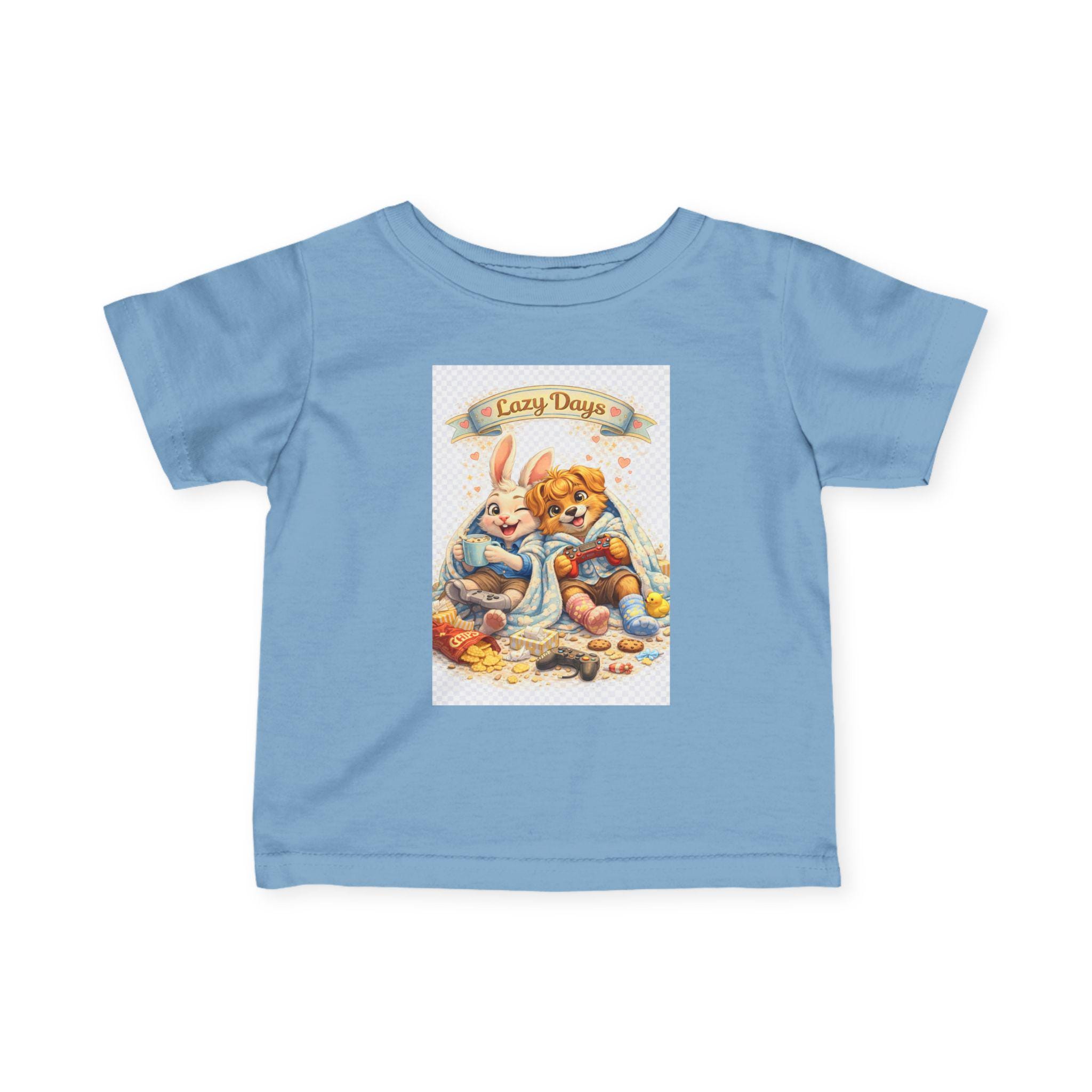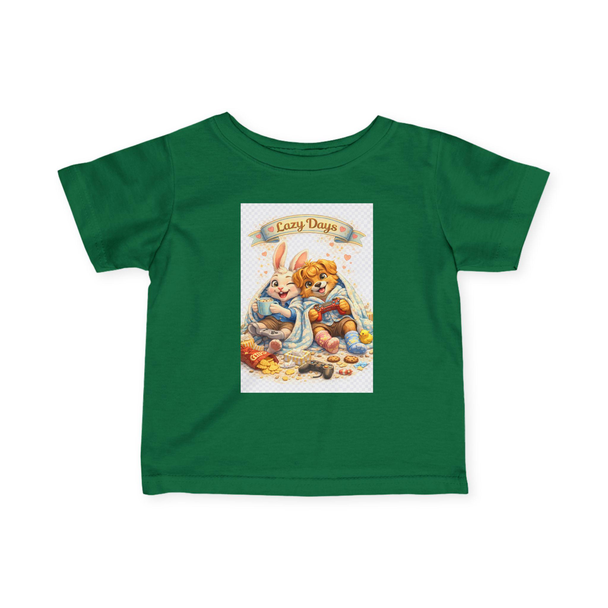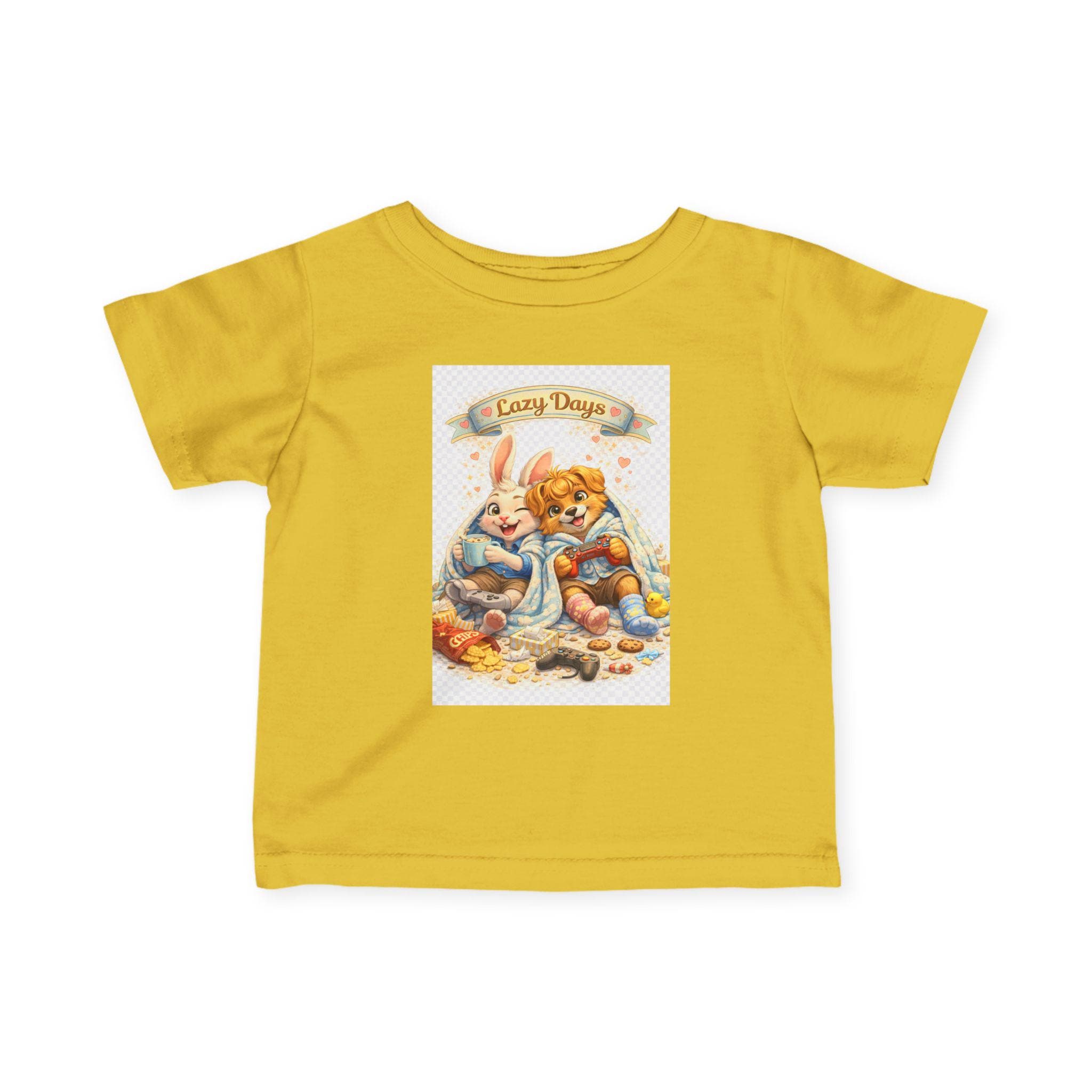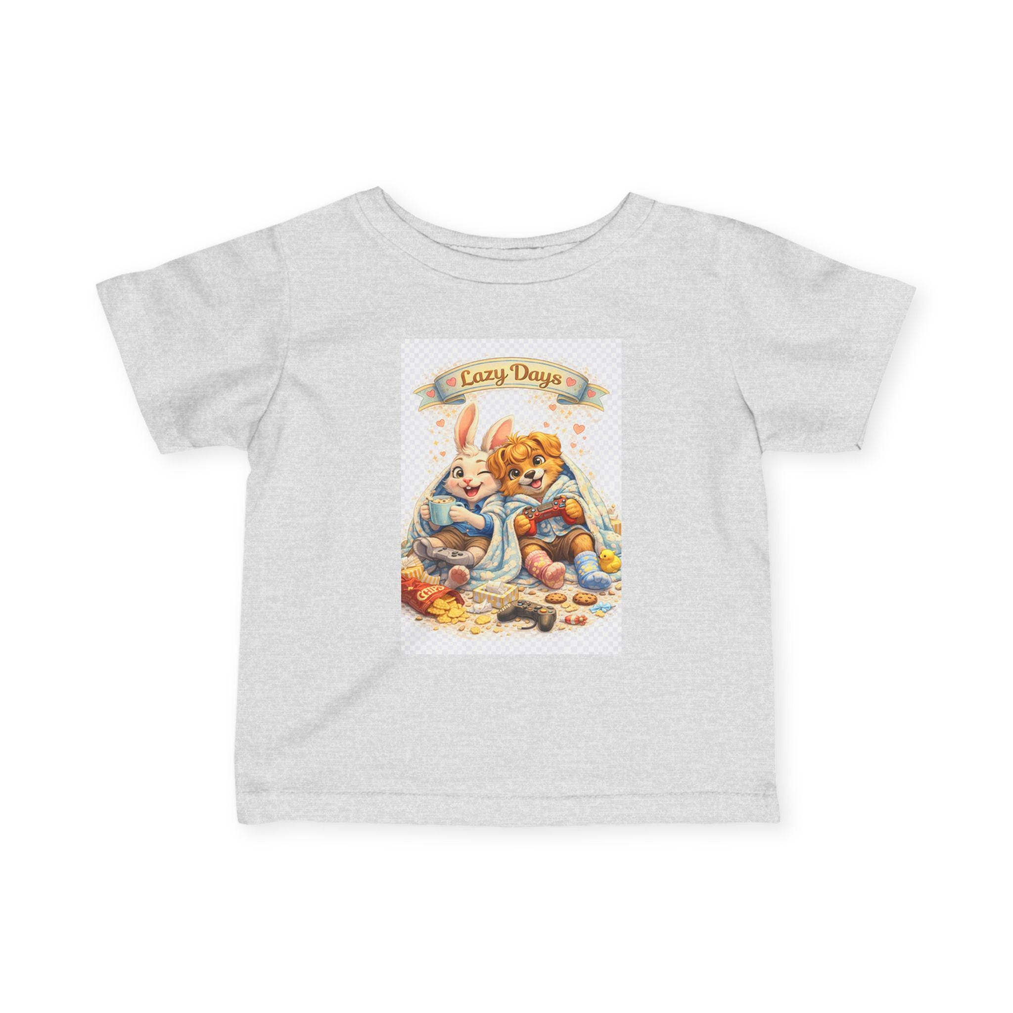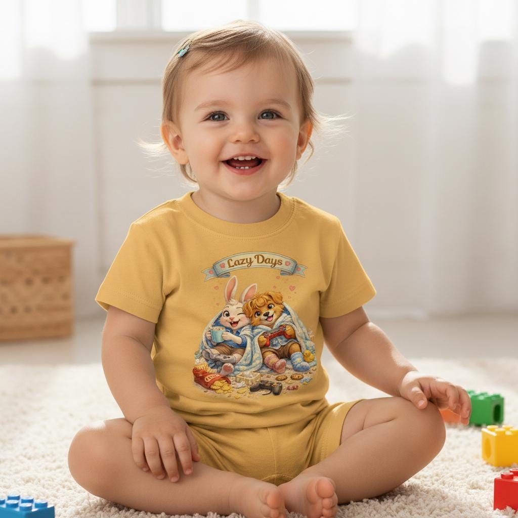 Soft, sweet, and made for tiny adventures. This infant jersey tee feels light against baby skin and holds its shape through cuddles and washes. The printed art—two sleepy woodland friends curled together under a banner that reads “Cozy Days”—brings a vintage nursery charm to everyday wear. Short sleeves and a classic cut let little arms move freely while the ribbed collar and shoulder tape keep the neckline comfy and resilient. Breathable, smooth fabric keeps naps cool and playtime easy, whether layered under a cardigan or worn on its own for sunny stroller walks.