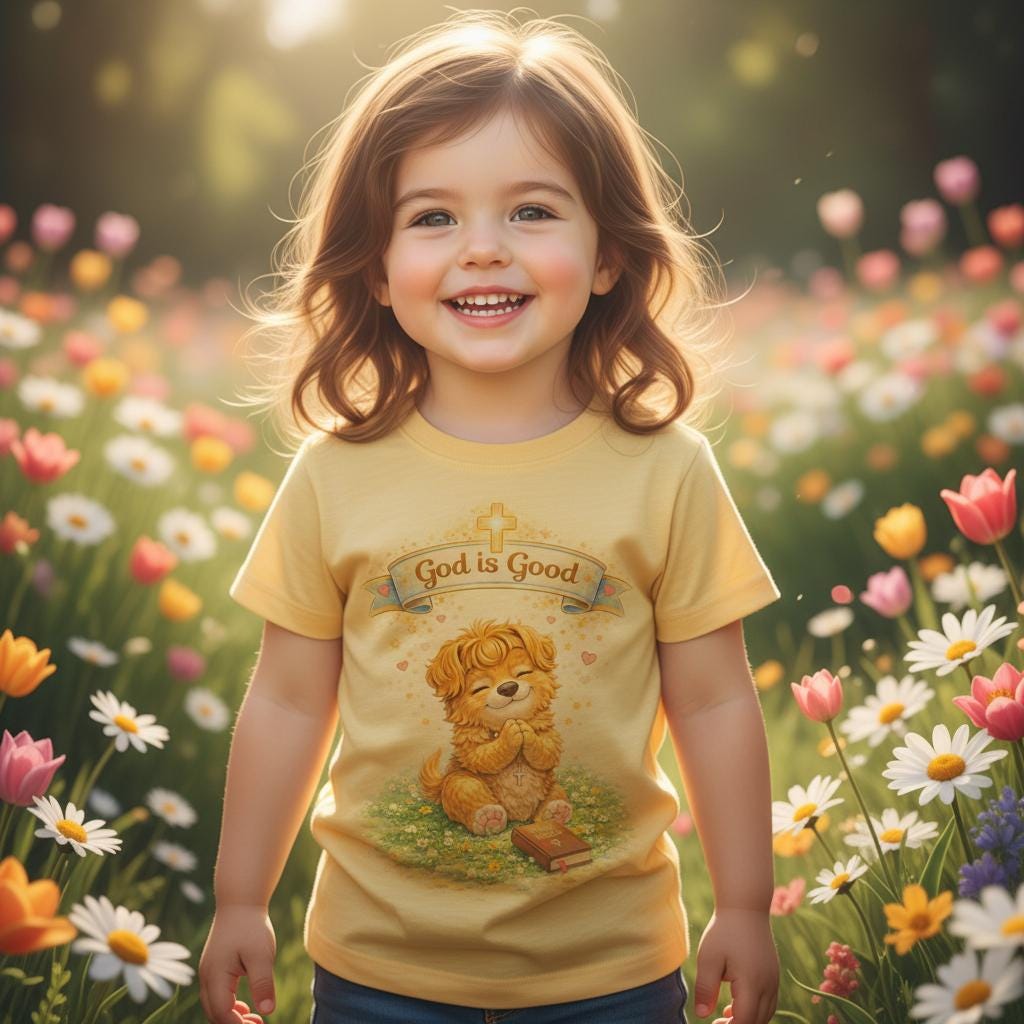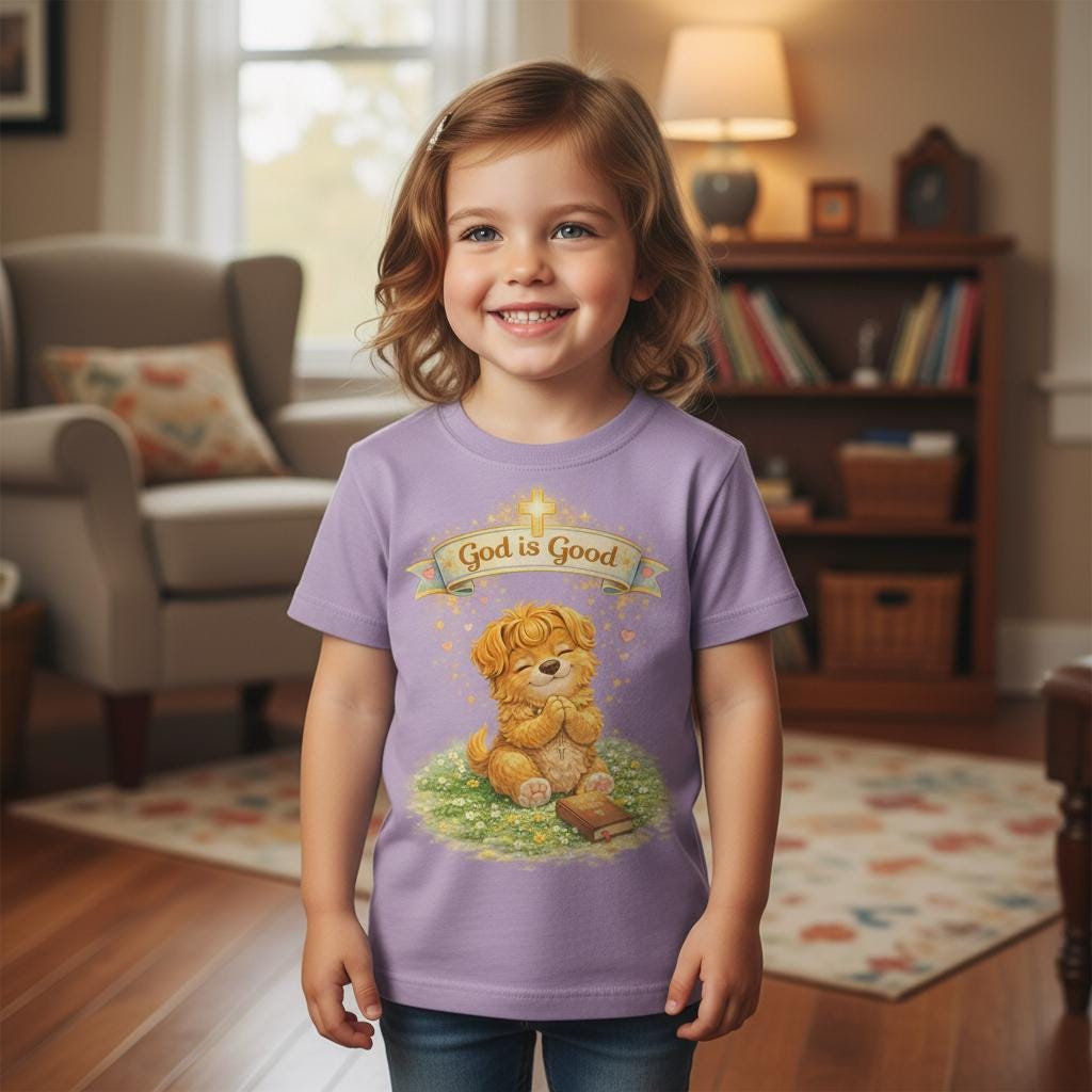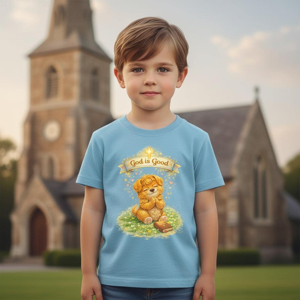 This soft infant tee brings gentle warmth to little moments. A golden, vintage-style bear sits on a patch of grass beneath a tiny banner that reads “God is Good,” giving the shirt a cozy, hopeful feeling without being loud. The lightweight cotton fabric breathes on warm days and layers easily under sweaters when it’s cooler. Short sleeves and a classic cut let babies move freely—reaching, crawling, napping—while the ribbed neckline and shoulder tape keep the shape steady through washes. It’s a quiet piece for church mornings, family photos, baby dedications, or everyday cuddles.